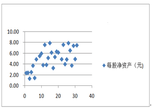 每股净资产对股价影响的相关性可以下图表示: