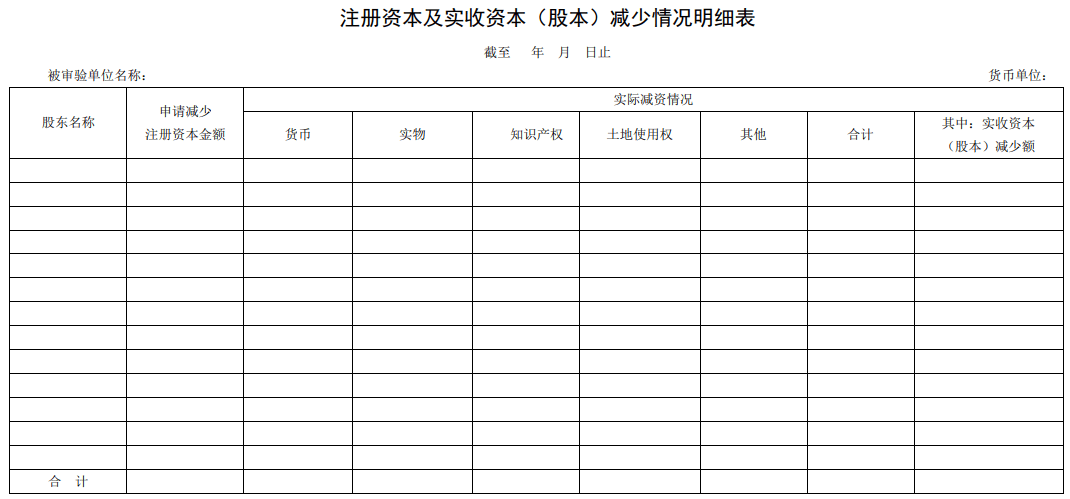 附件1:注册资本及实收资本(股本)减少情况明细表